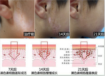 14天后,白斑内色素岛形成,斑痕消失,色差逐步淡化。